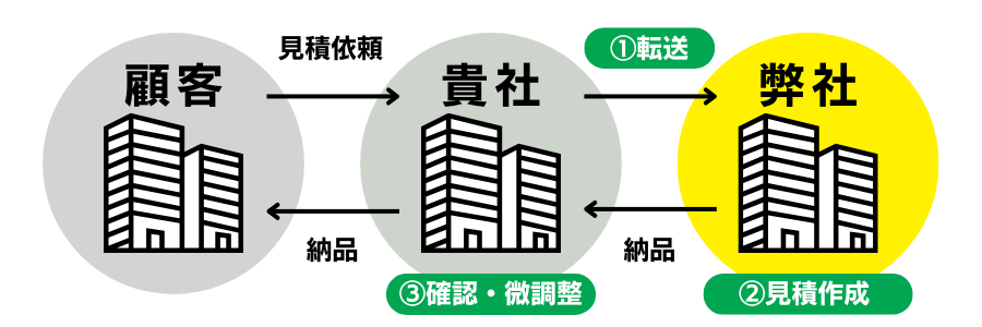 日々数通送られてくる依頼メールを弊社に転送するだけで、貴社の見積書作成時間を大幅に短縮することが可能となります。